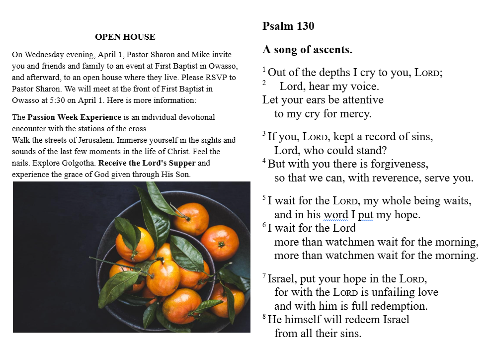 Psalm 130* (Unison) Insert